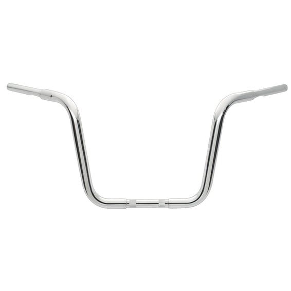 Chrome; Steel; These beefy 1-1/4" diameter Apes come knurled and pre-drilled for internal wiring. Riders arms and wrists are in the optimum angles for comfort and control. Works with 1" diameter risers and with or without e-throttle. Approx. dimensions: 12.5" end rise x 36.5" wide x 10" center x 12" pullback