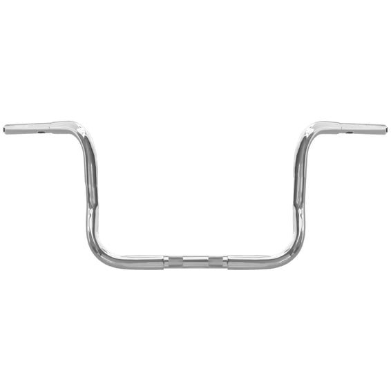 Chrome; Steel; Approx. dimensions: 10" rise x 36" wide x 11" pullback x 14" center width x 40° wrist angle. Compatible with models with 1" diameter riser area only. Custom designed for FLH, FLHX, FLHT & FLHTC Touring models with Batwing fairing (excl. FLTR), with or without e-throttle, to enhance riding comfort. Depending on installation rotation in the risers a 1 to 2.5" higher end rise and 1.5" to 2.5" more pullback can be expected when compared to stock bars. The grips are positioned behind the fairing. Bars are dimpled and drilled for internal wiring and have smooth inside corners to prevent wiring damage and ease in wiring pull-through.