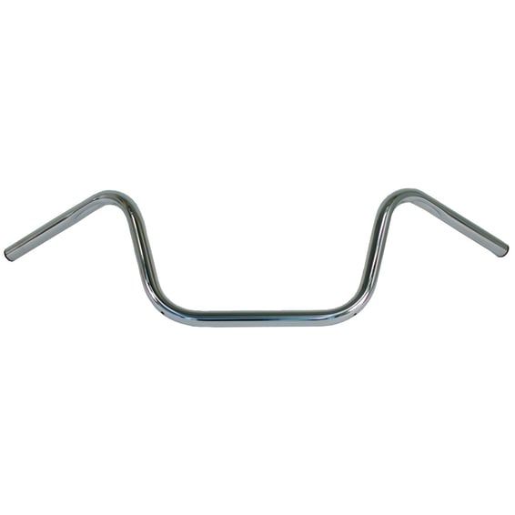 Chrome; Steel; Not dimpled; With 3 slotted holes for internal wiring; This comes with approval; Approx. dimensions: 25cm rise x 82cm wide x 17cm pullback Note: Check your local MCS dealer or the MCS sales department for exact type of approval and validity on bike model and years on the test report.82
