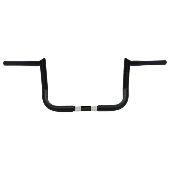 Satin black powder coated finish. Dimpled and drilled for internal wiring. With smooth inside corners to prevent wiring damage and ease in wiring pull-through. Works with or without e-throttle. Designed to fit the batwing fairings as found on FLHX, FLHT, FLHTC, Limited and Ultra Classic models. Approx. dimensions: 10" rise x 36" wide x 14" center width x 9.5" pullback and a 36° wrist angle.