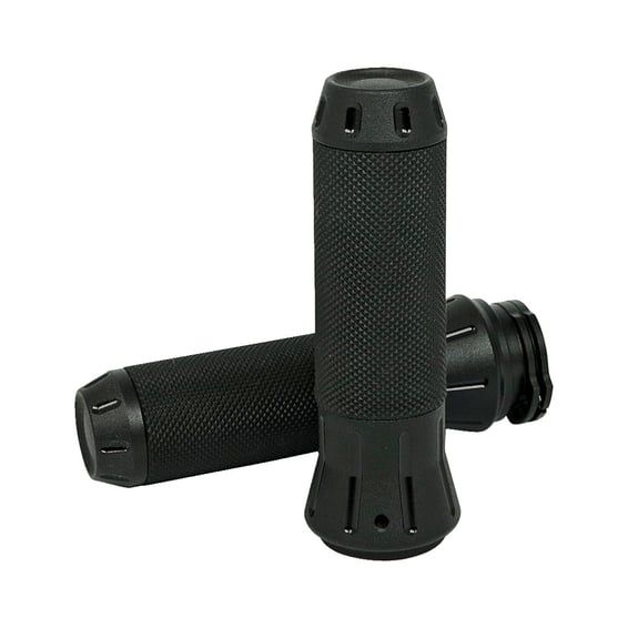 Stealth Tone black. CNC machined aluminum in combination with stylish rubber inlays make these design grips way more than just great to ride with. Fits 1" diameter handlebars and will take single or dual throttle cables.