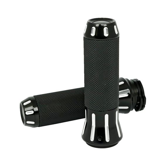 Black with a Contrast Cut machined finish. CNC machined aluminum in combination with stylish rubber inlays make these design grips way more than just great to ride with. Fits 1" diameter handlebars and will take single or dual throttle cables.