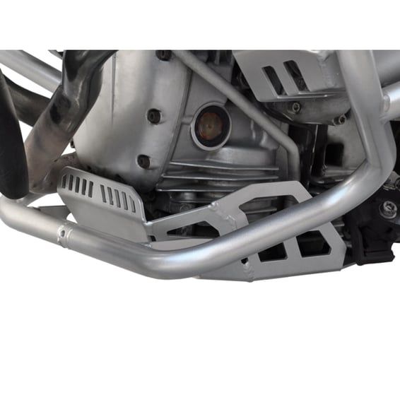 Protects the engine from stone chips. Made from silver powdercoated aluminum and easy installation because it can be mounted to the original mounting points. Compatible with the original center stand.