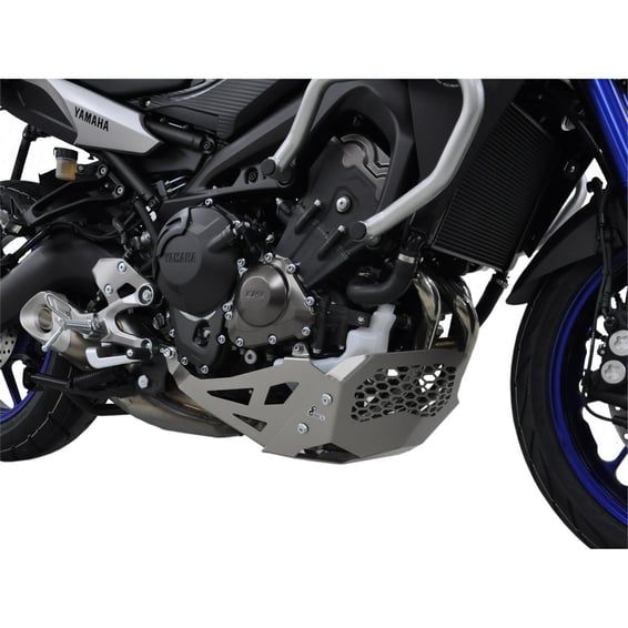 Protects the engine from stone chips. Made from silver powdercoated aluminum and easy installation because it can be mounted to the original mounting points. Compatible with the original center stand.