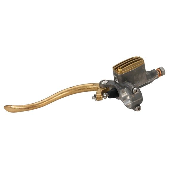 The K-Tech 'De Luxe' hydraulic clutch handlebar master cylinders in raw brass and aluminum. Italian design with stunning looks and matching quality. True Retro Styling with modern control!