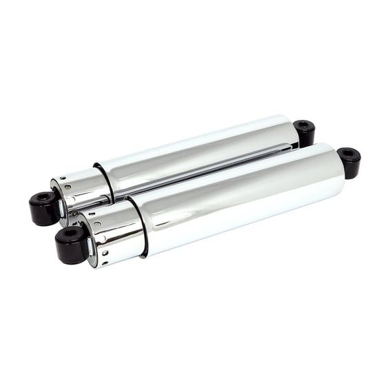Replacement shocks with covers. Sold in pairs and chrome plated.
