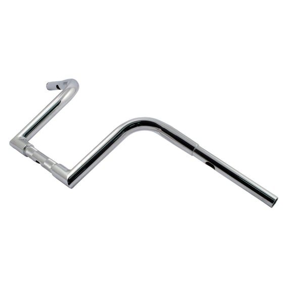 Chrome; Steel; Approx. dimensions: 10" rise x 33 1/2" wide x 10" outside base width x 8" pullback